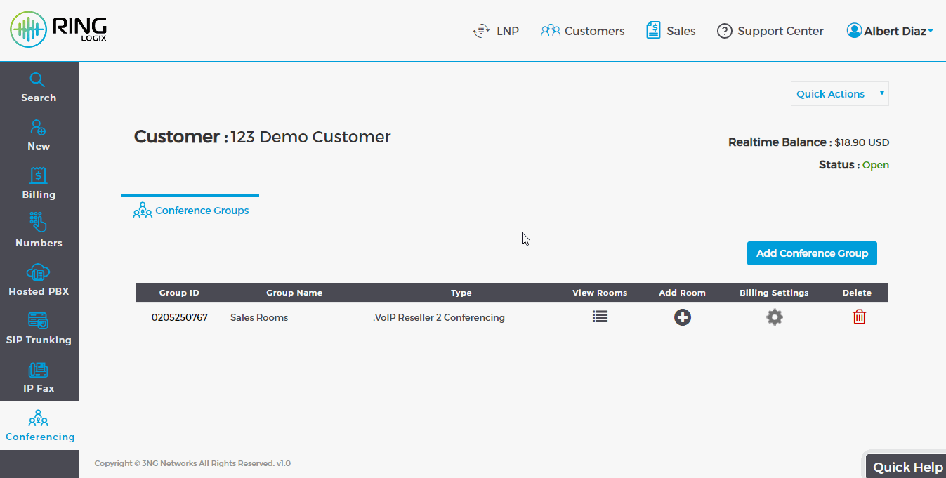 To deliver this service you start by creating a "Conference Group". This is where you will create all the needed "Rooms" (aka "bridges"). Most customers just need one group but large customers with many rooms and many departments can have multiple groups for better tracking and management.