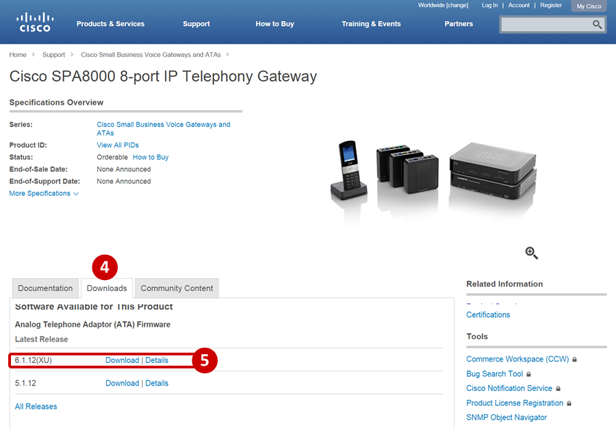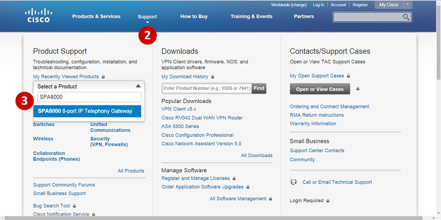 - Go to Cisco's website to download the firmware by clicking Support.
