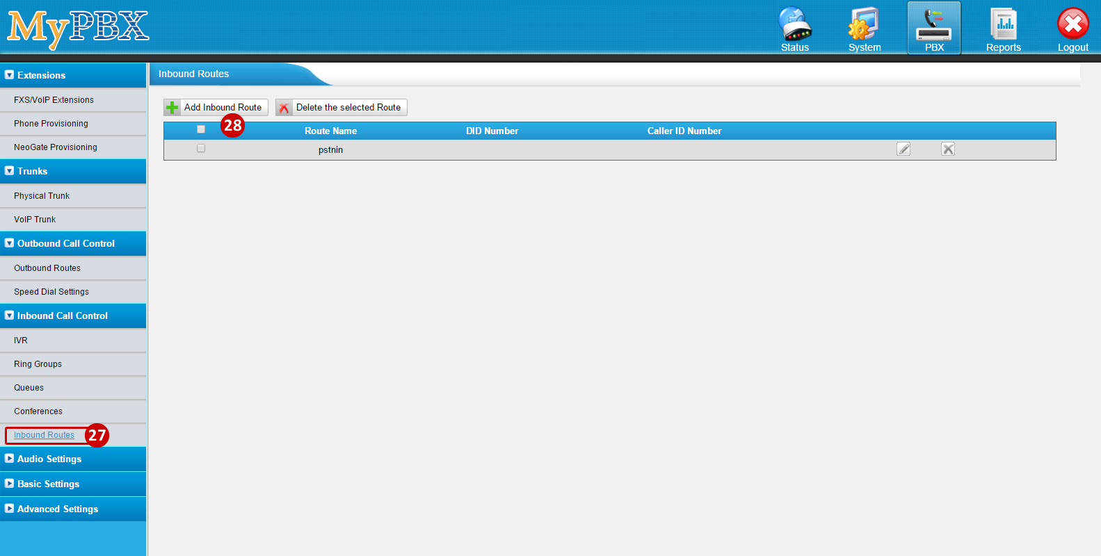 - To Add an Inbound Route, click on Inbound Routes (under Inbound Call Control)