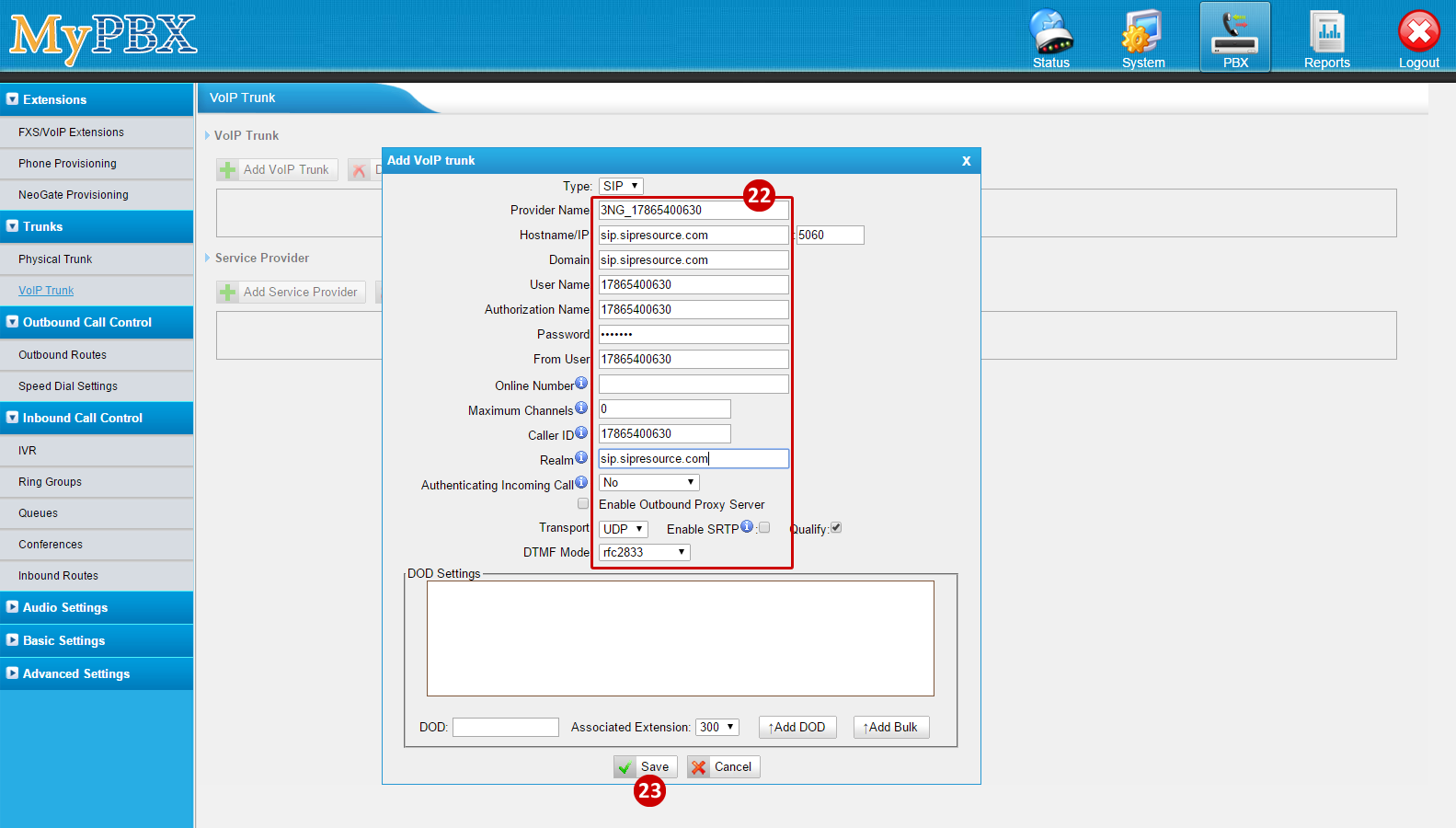 From the Add VoIP Trunk popup please add the following: