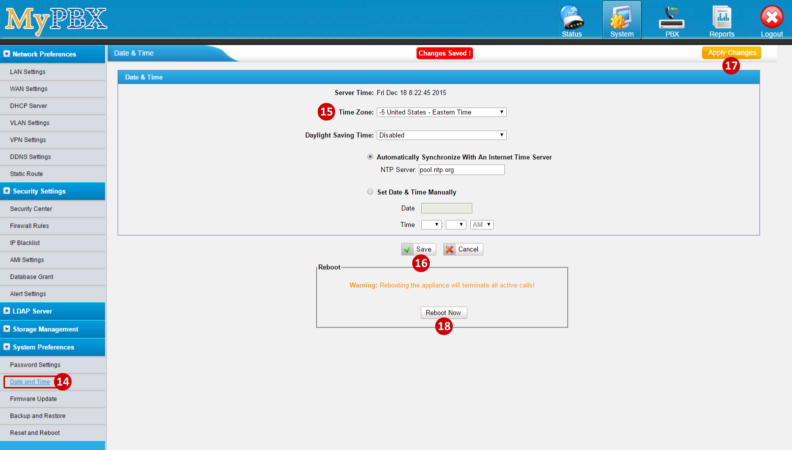 - Click Reboot Now